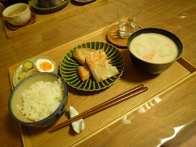 寒い日にぴったりな粕汁が今日作れてよかったです。焼鮭はそのまま食べても、粕汁につけて食べてもおいしいんです。あったまる~。