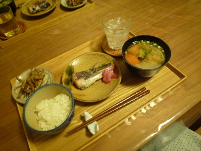主人の希望で今日は飛ぶ魚の塩麹焼き。ふっくら焼きあがりました。きんぴらごぼうは朝作ります。