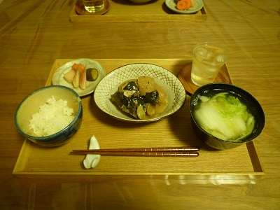 大根も米ぬかで45分煮たもの。こうするとびっくりするほど味がしみます。(大根の半分は昨日のトマト煮につかいました)