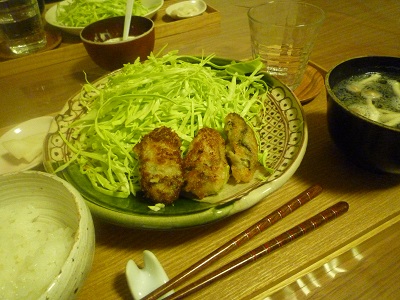 主人のリクエストで。カキフライです。牡蠣が大好きな主人なので、ふあうは。わたしは3個だけですが、主人は沢山食べてくれて満足!