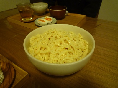 ヌードルメーカーで太麺をつくりました。重曹を入れて作ります。