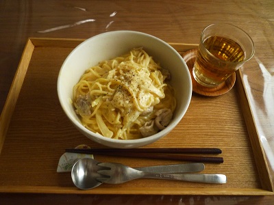 ここ数日胃もたれせず過ごしていましたが今朝パンを食べたら↓↓。お昼は食べられず。主人にはカルボナーラを作りました。