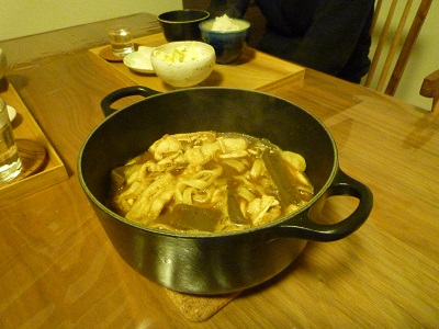 先日作ったカレーでカレーうどんを作りました。かつおのおだしを沢山入れてつくりました。おあげさんが美味しいの。