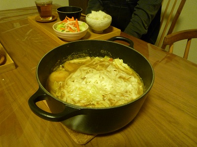 先日作ったカレーでカレー煮込みを作りました。味噌をいれるのが味のポイントです。温まりますー。