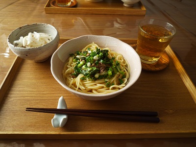 お昼は大体麺類の私。パスタだとあんまり胃にもたれない。主人には味噌煮込みを作りました。