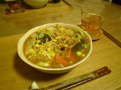 ということで夕食は味噌ラーメン。家にある野菜をたっぷり入れてつくりました。温まるしおいしいー。