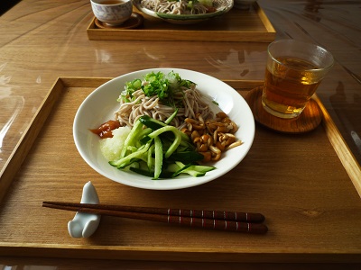 昨日は飲み会だったのであっさりとしたそばが美味しいの。有松にあるお蕎麦屋さんで食べたそばをイメージしました。