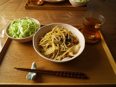 旅行から帰ると、納豆とかが美味しくかんじます。久しぶりのキャベツの千切りうまうま。