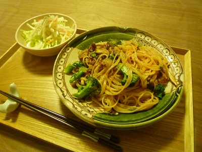 パスタ、得意料理です。塩加減が最高に美味しいです。疲れて帰ってくると塩気が美味しいもの。主人も喜んでくれました。