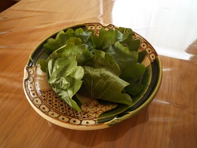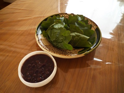 はじめてかしわもちを作ってみました。かしわの葉っぱは富澤商店で購入。