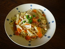お昼ごはんに「あんかけ焼きそば」をまた作ってみる。お気に入りのお店の真似をしてタマネギを大きめに切ってみたらよい食感でした。タケノコを入れるつもりが忘れてしまったのが残念です~。