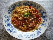 またまた作ったイカとミニトマトのスパゲッティ です。最近凝ってたべています。1週間あかずに食べています。もちろんフライパン1つで作ります。