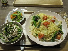 ①菜の花もスパゲッティにいれても苦味が引き立ちます。