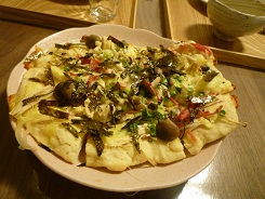 ①ピザはいつも2種類作ります。ひとつはトマト、ひとつは和風で、「和風」にはしょうゆをかけます。