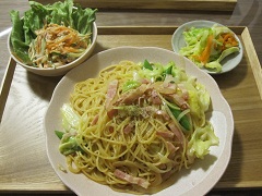 ①スパゲッティにキャベツを入れるとおいしいです。疲れていて食べると元気になれます。