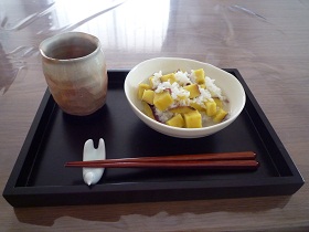 さつまいもがごろごろたくさん入った贅沢なお粥です。