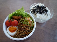 わたしの会社は社員食堂を費を会社が負担してくれるので、お弁当は夫のみです。今日のメニューが鶏のから揚げときんぴらごぼうだったのが笑えました。家のメニューとよくかぶると同僚もいいます。