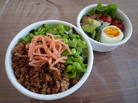 ①今日は「豚肉」のそぼろです。食欲がでる味です。