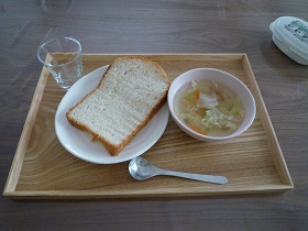 さわやかな朝にふさわしい朝食です。パンは梅雨なのにふかふかしています。