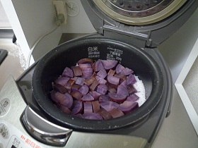 ①紫色のさつまいもごはんはどうかと思いきや、お赤飯みたいで色も味もおいしかったです。