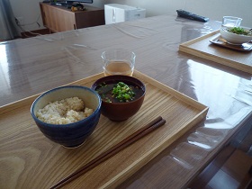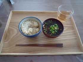 夫は玄米が苦手なので、白いご飯でお味噌汁雑炊にしました、
