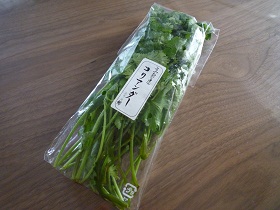 わたし、パクチーが大好きです。いつもいくスーパーで比較的安く売っていたので贅沢にも買うことにしました。タイ料理やベトナム料理は大好きなのですがその中でもパクチーがたくさん入っているサラダとか大好きです。ちなみに京都産らしいです。
