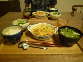 ①「坊ちゃんかぼちゃ」というかぼちゃを買ってみたのですが、これがびっくりするほど甘くておいしいです。良いところの息子さんだと夫はいっていました。ホワイトソースは豆乳で作りました。見えないのですが「LOVE PASTA」入りです。