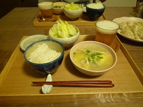 夫には少し待たせてしまいましたがお出かけしても夕食も作りました。餃子はこないだ作ったものを冷凍したものです。餃子の存在を忘れていた夫はテーション↑でした。ビールを買っていただきます。
