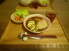 夏野菜はかぼちゃとズッキーニをソテーにしてのせました。