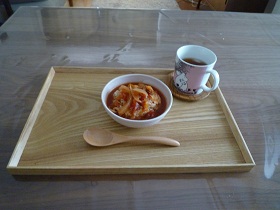 ①たくさん作ったので今日もミネステローネです。わたしは玄米ご飯にかけていただきましたが、リゾットのような食感でおいしかったです。