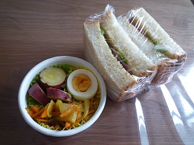 ①久しぶりのサンドイッチはおいしかったそうです。パンは白ゴマパンにしてみました。