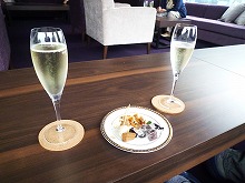 サービスでホテルのラウンジでウェルカムドリンクとしてスパーリングワインをいただきました。