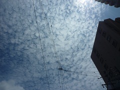 買出しの帰り、秋によく見る「うろこ雲」みたいな雲を見つけました!