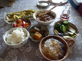お昼ごはんは母が「のこりものだけどごめんね」っとこんなすごい料理がでてきました。