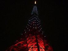 お店を出ると東京タワーの色が少し変っていました。